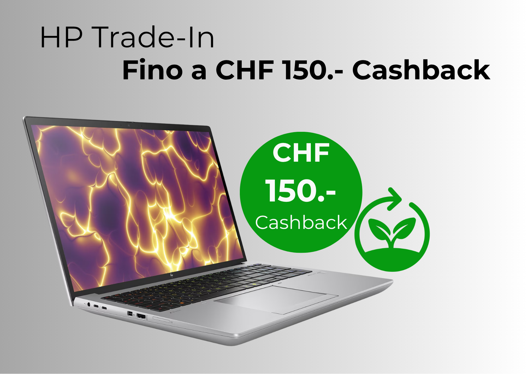Scopri come ottenere fino a CHF 150.– di cashback sostituendo il tuo vecchio dispositivo con un nuovo PC o Display HP con Windows 11.